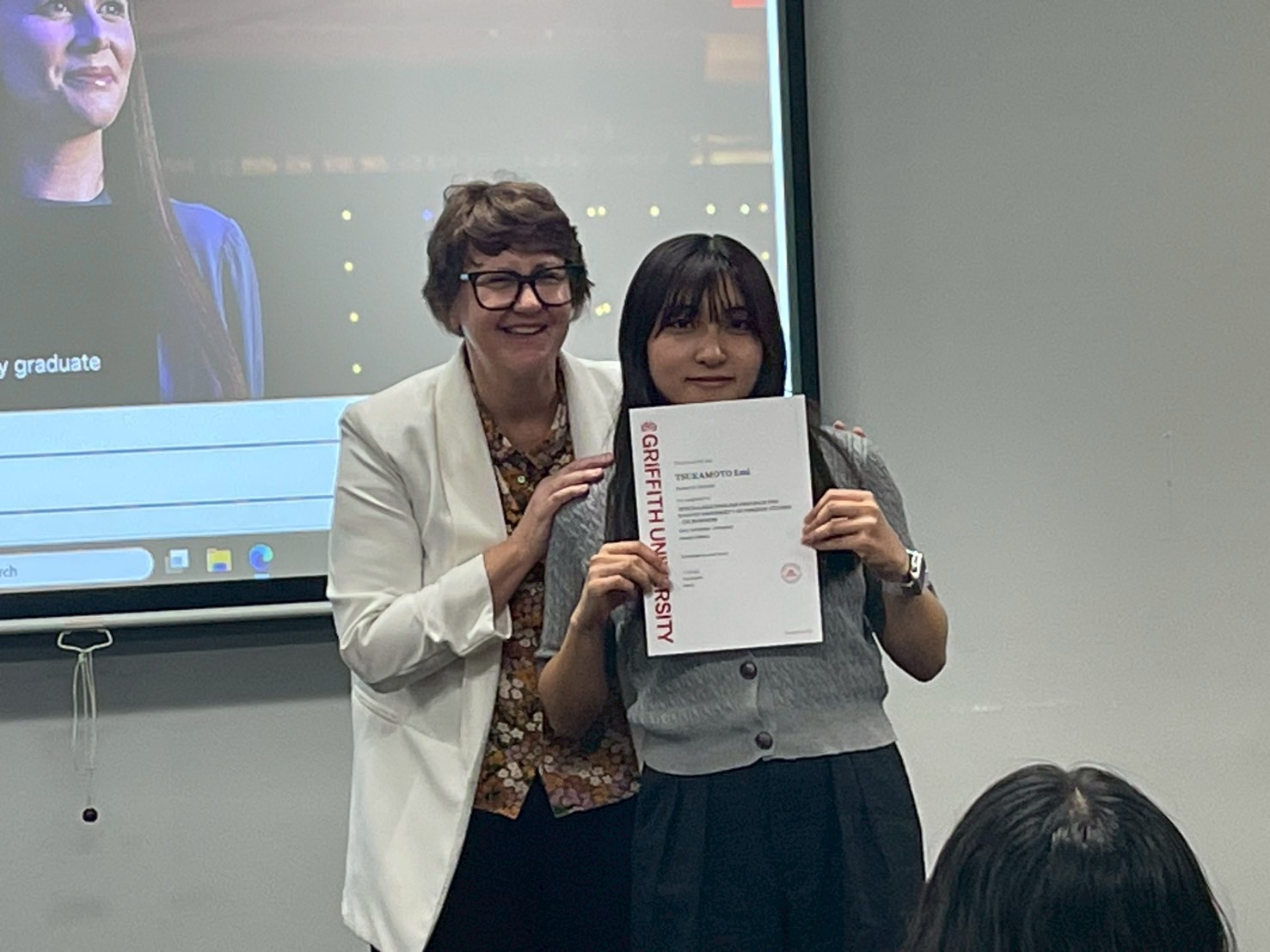 前半3週間のグリフィス大学での語学研修では、英語学習だけでなく、オーストラリアの文化や後半の就業体験で役立つビジネス英語を中心に学びました。特に驚いたのは、レジュメ(履歴書)の書き方が日本と大きく異なる点です。授業はグループワークや個人の意見が求められるスタイルが中心でしたが、積極的な態度で臨むことができました。